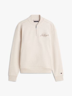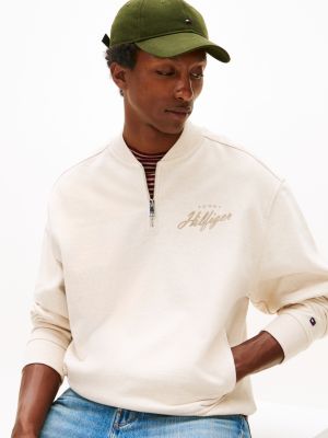 For a luxe athleisure look, choose this quarter-zip jumper, made from pure cotton terry with embroidered branding on the chest.