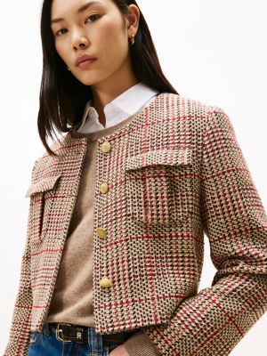 This suit jacket is crafted from textured cotton blend tweed and features a smart woven check, giving it a modern heritage look.
