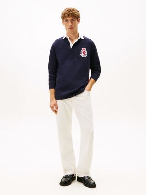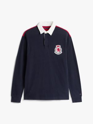 Embrace traditional sportswear styling with this rugby polo shirt, which fuses a relaxed fit with an eye-catching colour-blocked design.