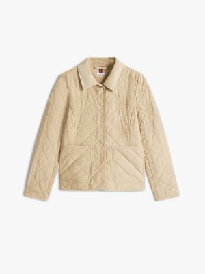 A modern take on heritage styles, this water-repellent padded jacket combines a diamond-quilted design with a figure-flattering slim fit.