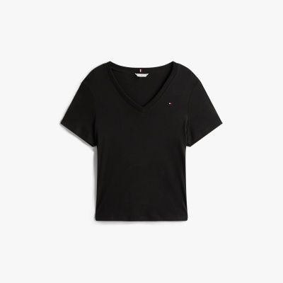 A V-neck design and tightly woven pure cotton fabric with a silky finish elevate this slim-fit T-shirt to a versatile style staple.