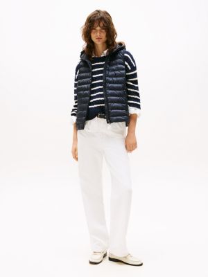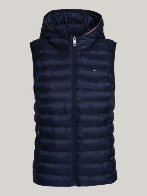 Insulated with lightweight down, this padded gilet provides an impressive warmth-to-weight ratio – the ideal outer layer for transitional weather or extra insulation under a jacket. The high neck adds both style and protection from the wind, while the full-length zip fastening allows for easy on-off wear and adjustable coverage to suit the temperature. Signature tape around the hood offers a distinctive Tommy Hilfiger touch, adding colour and branded energy to this staple. Finished with chest flag embroidery, the piece remains understated yet recognisably premium. Its quilted design works well with your ensembles, transitioning easily from urban outings to weekend escapes to the countryside.