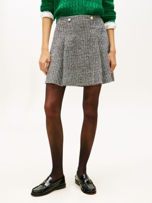 This wool-blend mini skirt in an eye-catching micro houndstooth check features pleating and button detail for a sophisticated eveningwear look.