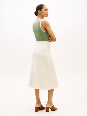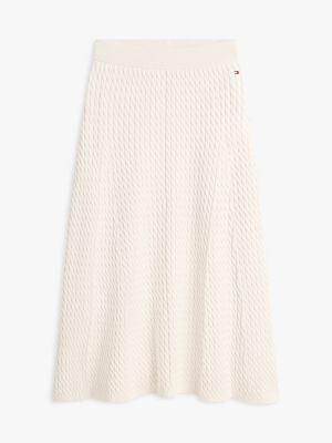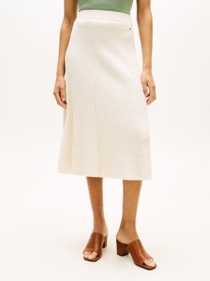 A classic cable design gives this midi A-line skirt a timelessly sophisticated look, crafted from pure cotton in an intricate fine knit.