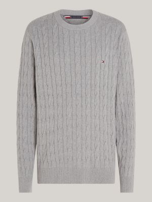 The traditional cable-knit pattern adds timeless appeal to this versatile jumper that's crafted from pure combed cotton and finished with flag embroidery.