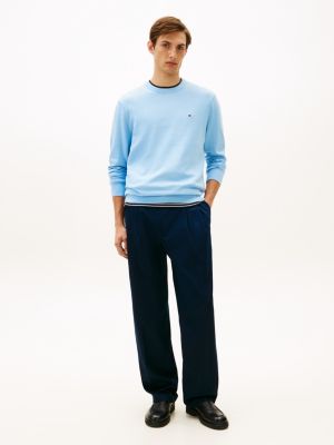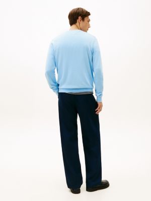 This pure combed cotton crew-neck jumper provides a classic look for cooler days, whether worn alone or as a top layer.