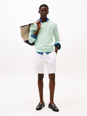 This pure combed cotton crew-neck jumper provides a classic look for cooler days, whether worn alone or as a top layer.