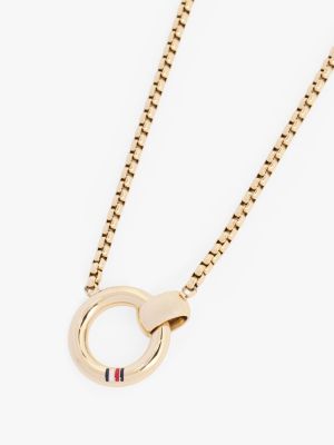 Add a modern touch to relaxed outfits with this sumptuous gold-plated necklace, featuring a circular pendant with vibrant enamelled signature detailing.
