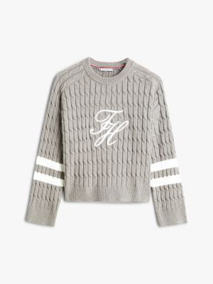 This cable knit jumper in pure combed cotton features bold script logo embroidery on the front for a signature finish.