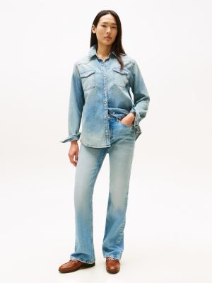Achieve a flattering silhouette with these stretch jeans, cut with a mid-rise waist and featuring a retro-inspired bootcut leg.