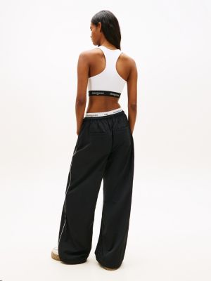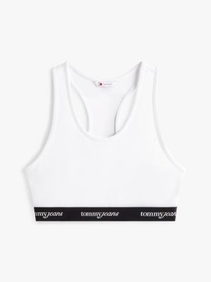 This racerback bra top combines a sporty silhouette with athleisure styling courtesy of the repeat logo taping on the elasticated underband.