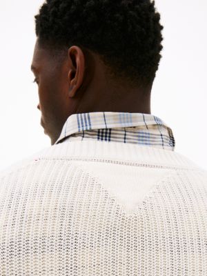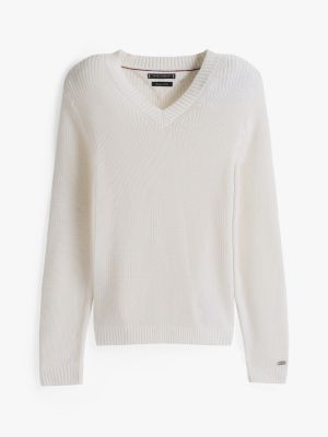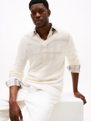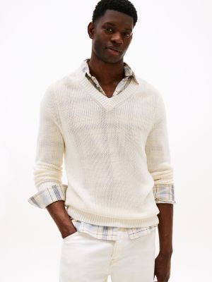 This jumper is knitted from pure cotton with a relaxed structure and finished with a chunky contrast rib V-neck for added texture.