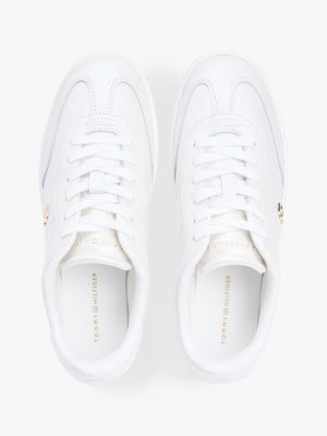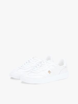 The metallic fibres infused in the uppers of these low-top trainers create a shimmery finish, enhancing the gleaming TH monogram plaque.