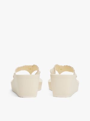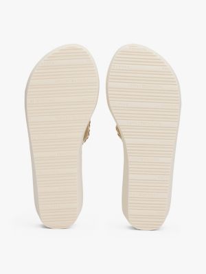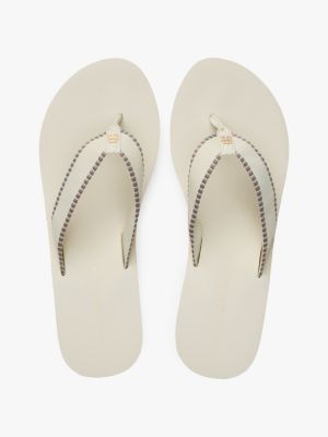 Get ready for sunny beach days with these webbing-strap flip-flops, featuring a wedge heel for lift and a sparkling TH monogram plaque.