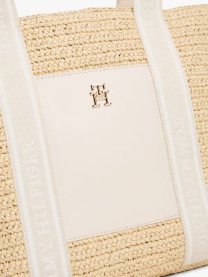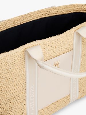 This spacious tote is an effortless accessory for warmer weather thanks to its crochet design and repeat logo webbing handles.