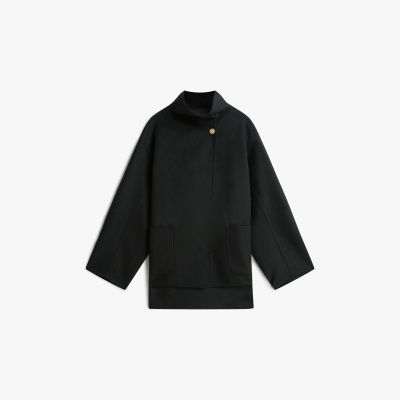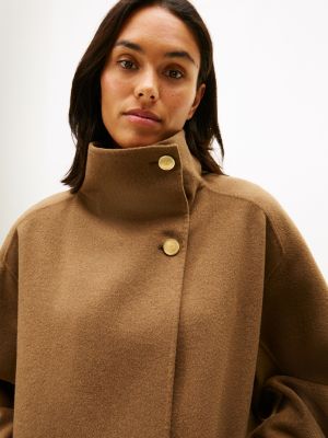 This warm wool-blend coat makes a sophisticated choice for the cooler months, with its cosy funnel neck and chic gold-tone buttons.